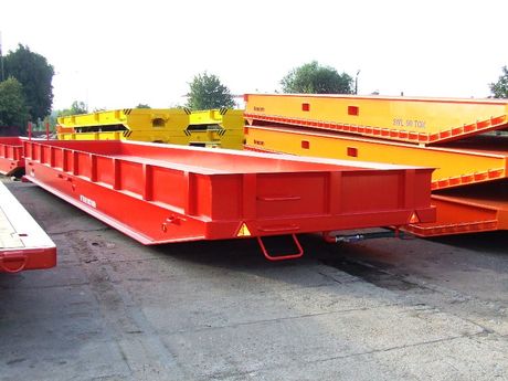Spill trailers are available with or without running gears. SEACOM offers different designs, where the tanks are placed either inside or above the reservoir secured by twist-locks. Like a roll trailer, they can be pulled by means of a detachable or a fixed gooseneck. Splash walls are available as an option.