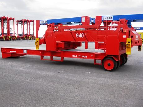 Spreaders require regular service and maintenace work. SEACOM spreader trailers are specially designed to accomodate spreaders of various sizes and are equipped with adjustable supports.